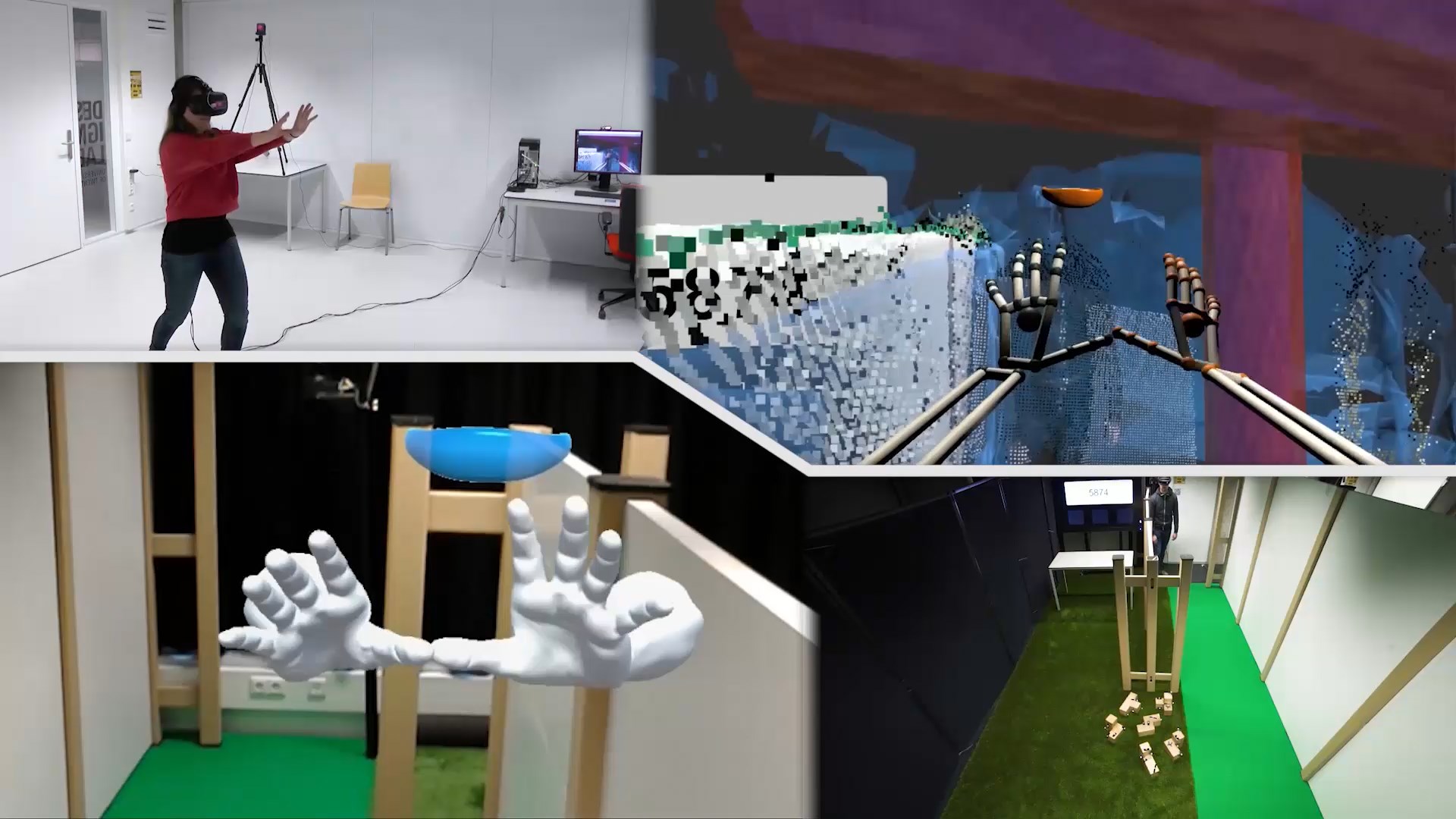 The visitor is virtually transported to the visitee’s environment using a virtual reality system that displays a virtual representation of the visitee’s surroundings. A virtual embodiment of the visitor is projected into the visitee’s environment using Microsoft’s HoloLens augmented reality glasses. The HoloLens’ low resolution geometrical scan of the environment is used as a basis for the scene that is shown to the visitor, which is extended with more detailed point clouds that are captured with Kinect depth cameras.